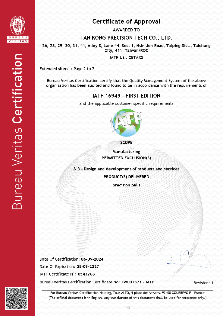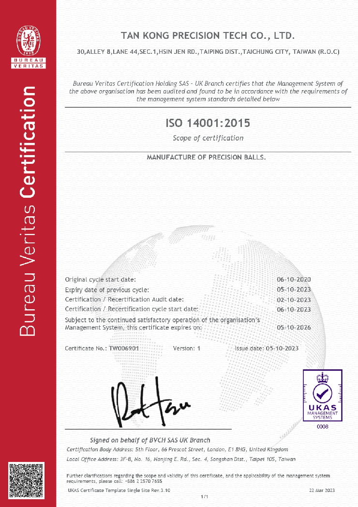 Established in 1978, Tan Kong Precision Tech Co., Ltd. has been a professional ball and cylindrical roller manufacturer servicing the world with quality rolling elements. Through the years, Tan Kong has grown into the biggest precision-bearing product manufacturer in Taiwan and developed the technology to service the automotive and aerospace industries. Our principle has always been to satisfy every client's specific requirement in terms of cost reduction, production efficiency, product quality, and service.